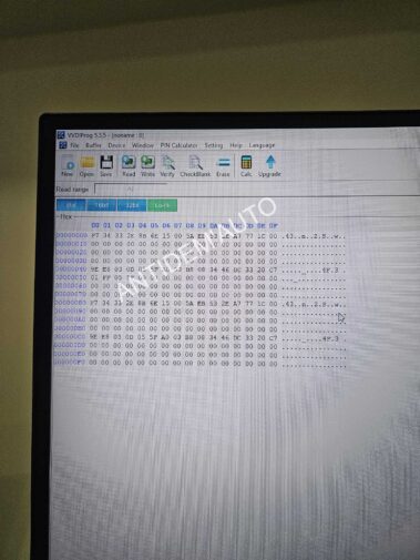 Une fois la puce dessoudée, elle est installée sur un programmateur électronique capable de lire les données internes.