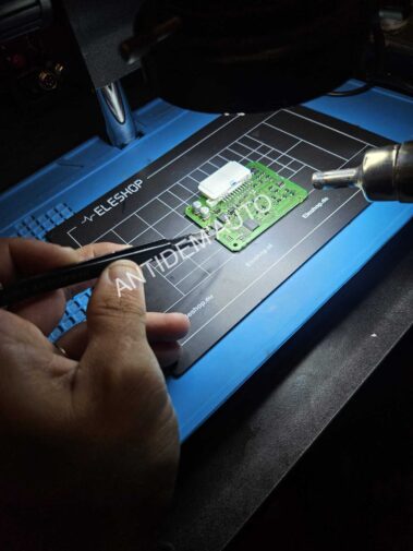 La première étape consiste à démonter le boîtier et localiser la puce EEPROM qui contient les données de reconnaissance du véhicule. C’est un travail minutieux qui demande des compétences en microélectronique. Nous utilisons un équipement spécialisé, notamment une station à air chaud et des pinces de précision.