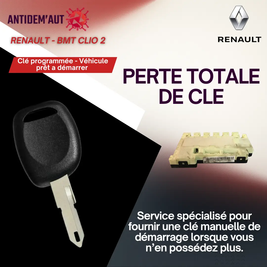 Vous avez perdu toutes vos clés pour votre Renault Clio 2 (phase 1) équipée d’un antidémarrage avec module BMT ? Nous proposons une solution complète à distance, sans remorquage du véhicule.
