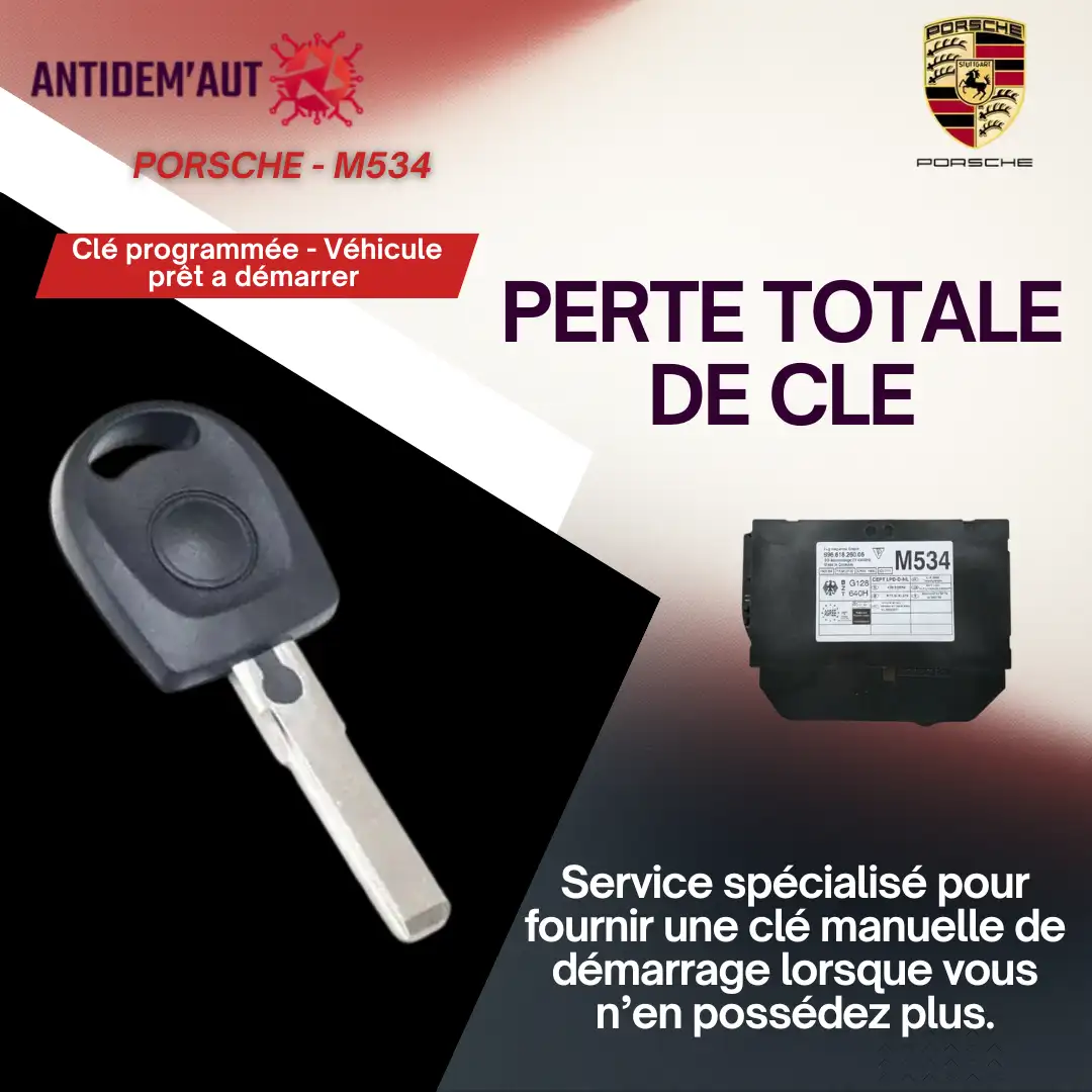 Vous avez perdu toutes vos clés sur une Porsche équipée d’un boîtier M534 ? Nous proposons une solution simple, rapide et 100 % à distance : fabrication de deux clés mécaniques neuves, prêtes à démarrer dès réception, sans codage électronique complémentaire.